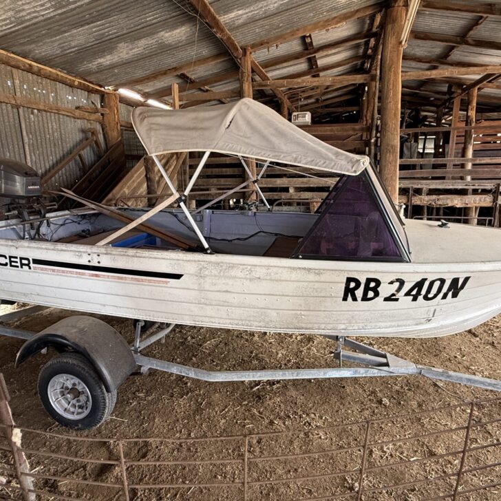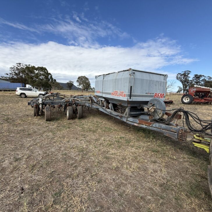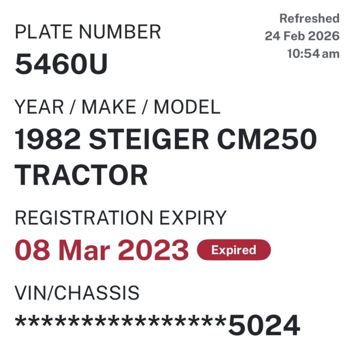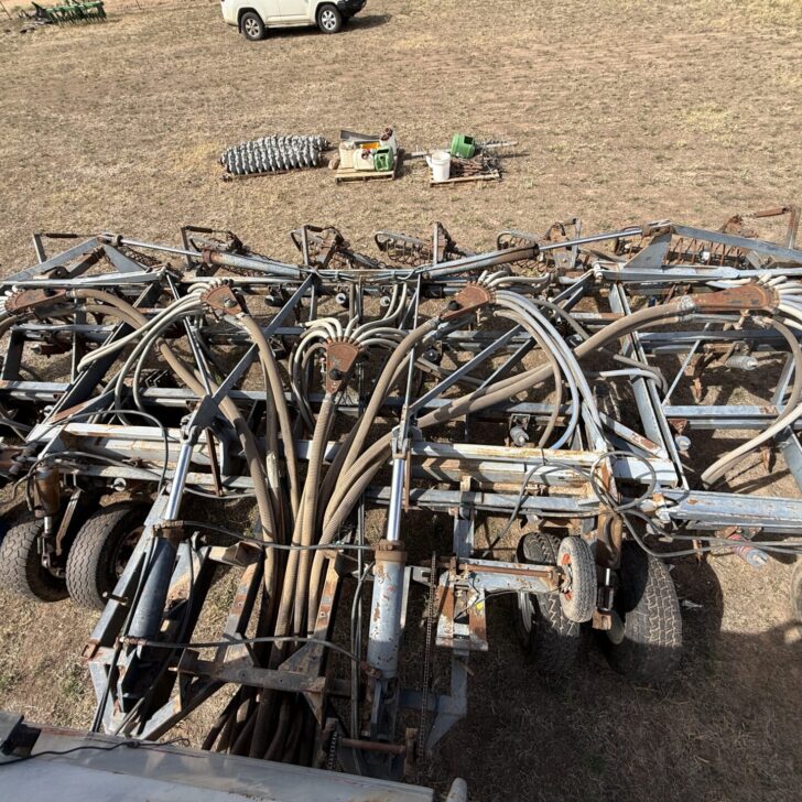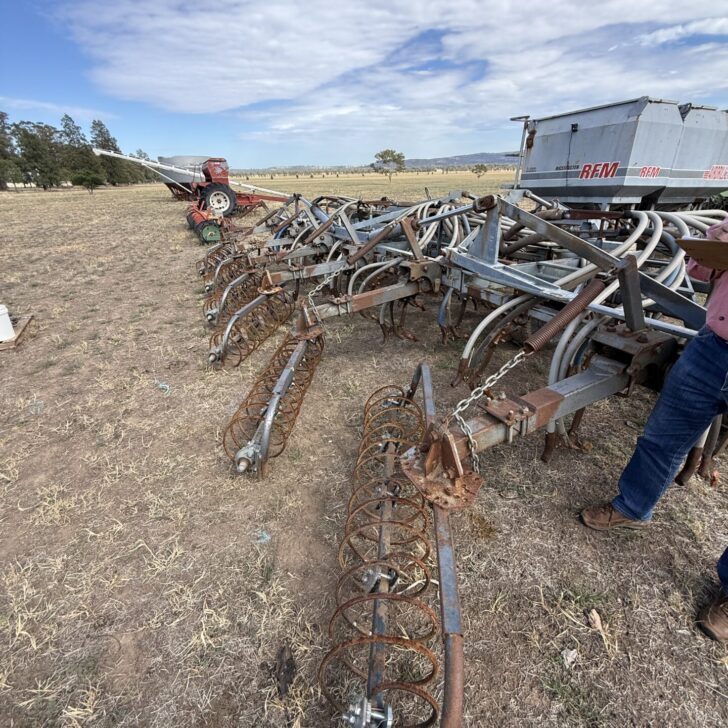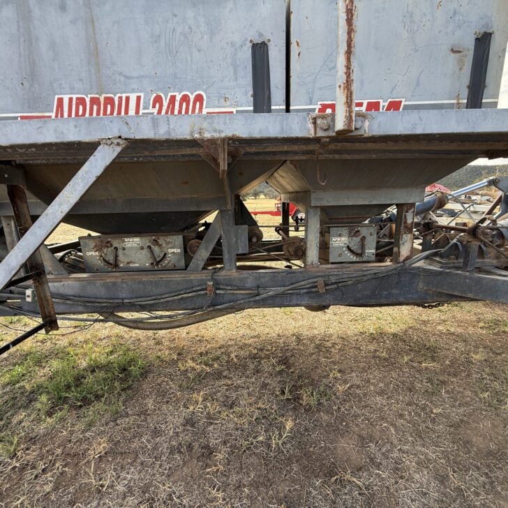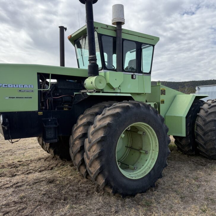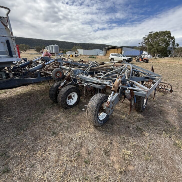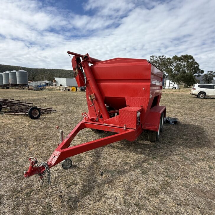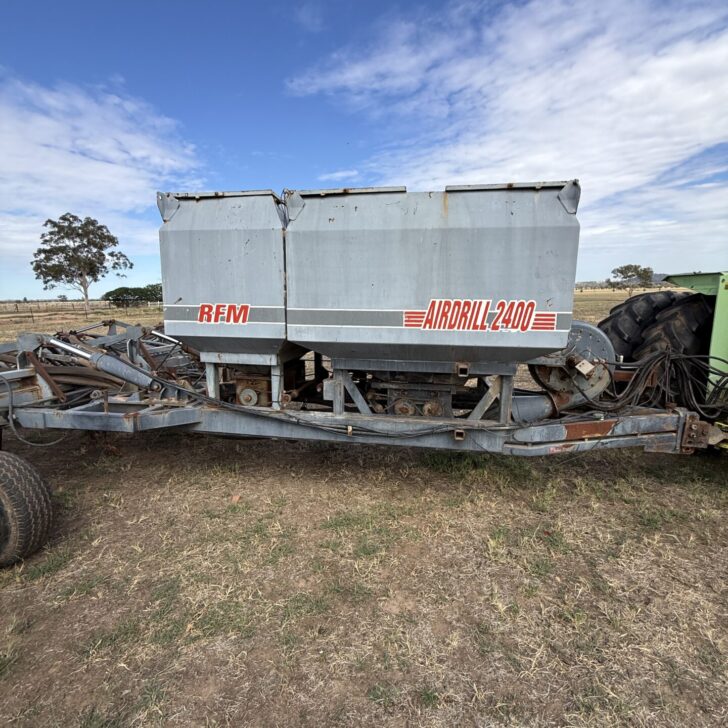 Steiger Cougar CM250 tractor, 250HP, air seeder return, 4 remotes, air conditioning, manual (original), 10,311hrs, 30% tyres; RFM Airdrill 2400 air seeder, 35 tyne, 28 foot, tyres 35%, 4 cameras – 1 each bin, in cab screen, in cab electronic controller, 3 bin seed box, 1 set up as small seed, new seed meter, rollers and bearings, coil packer harrows, full manual & calibration, liquid fert kit, assortment of spares, tynes and springs; Case IH 5126 stamped John Shearer frame Direct Drill Seeder, box raised, 27 tyne, tyres 95%, small seed box, manual; Ford 4600 Tractor 1982, 3223hrs, one owner, original condition, original manual and purchase receipt, front end loader, hay forks, bucket (gp); Bromar MF50 multifeed Trailer, 2020, extended Auger – 1m, 50 Bag, Honda motor, extra heavy 50mm chassis, R400 Boch scales, rollover tarp, electric trail feed, electric in/out gear fitted MF0025174 – serial number; Aerator – New Agrifarm Agrivator AV300, done 10ha, near new, 180mm tyne length, 3PL, 2.8m wide; Kurrajong 1000 Spreader (needs work but functional) tow behind spreader, PTO driven; Crown Slasher 2.2m tow behind, PTO, rough, needs work; Diesel Overhead tank, 2200 litre, needs work; Ford Ranger Tyres, 4 x Dunlop AT22 grandtrek 17 inch rims; Connor Shea tynes, pallet of; Plastic foot bath; Steel Silo – 8t, good fert/seed silo; Fire Harrows, needs work, centre length 3350, 2 wings 2660, overall 8360; Tyre Roller needs work 6100mm; Field Bin x 1 (20t), working order, needs tyres, no floor rust; Field Bin x 1 (15t), floor rusted out; Connor Shea Disc Drill Seeder, 3PL, 2.1m working width, seed/fert boxes; Sunbeam Overhead Gear x2 , old grinder, on pallet; Pallet of Tools; Yamaha DT200, unknown condition, tyres – front 30%, back 60%, with cardboard box; Husqvarna Bikes,2008 Husqvarna TE510, spares only, not in running condition, last ride stopped about 6 months ago and hasn’t been pulled down to fix; comes with complete spare 2009 Husqvarna TE510, complete, project, with pallet. Enduro tanks guards and seats all in good condition; Stacer Runabout 3.8m, forward controls, 20HP Mariner outboard, bimini, Rego – Trailer F46176 expires 10/08/2026, Boat RB240N expires 10/02/2027; Gas hot water system, unknown condition; Honda Quad TRX 420, 2008, tyres front 15%, back 20%, starts, runs intermittently; Te Pari Auto Drench Gun, brand new; Rheintechnik Preg Scanner; Grease Guns x2; HR Holden spares; John Deere 444 loader. No engine, no bucket. As is where is; Steel frame timber floor, incomplete raised dog cage base; Stays and Posts, 24 steel stays – 4 strainers; Hinge joint & Netting, 10 part rolls of hinge joint and foot netting; Hinge joint & Gates, 6 part rolls of used hinge joint and 2 old gates; Wire spinners; Wire, pallet of barb wire and plain wire Hinge joint roller; Assortment of tyres. Some with rims; Steel posts, pallet of Steel Star pickets – used; Multiple IBC’s, non chemical, food safe;