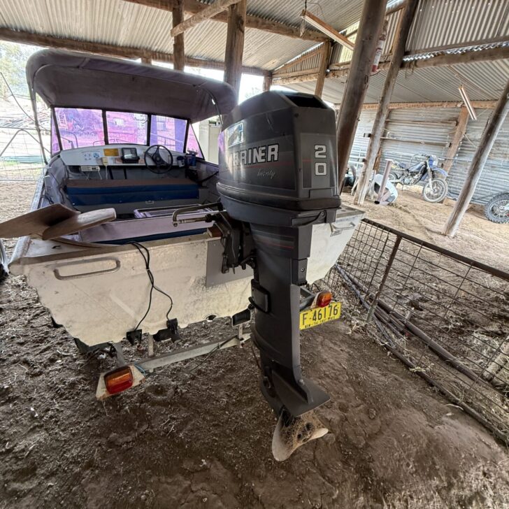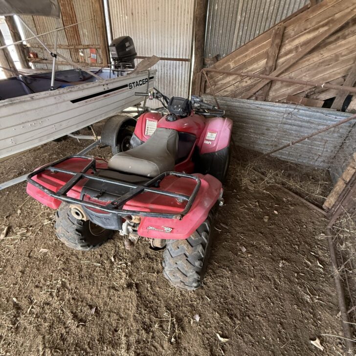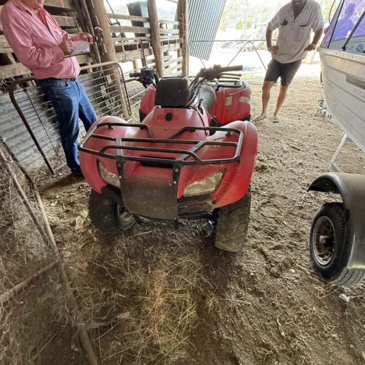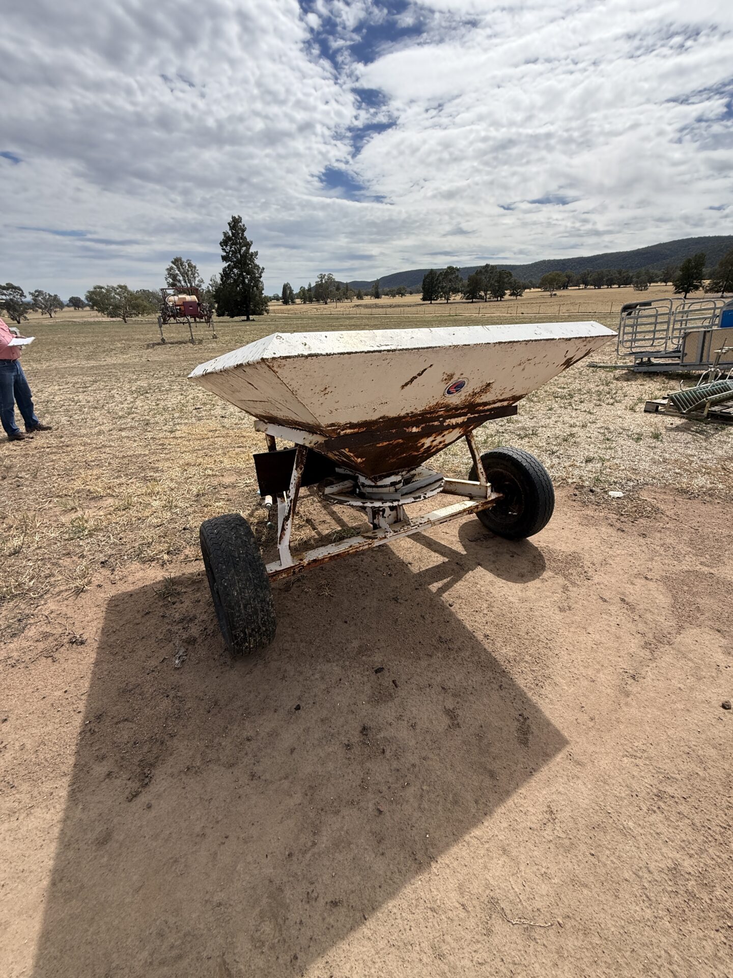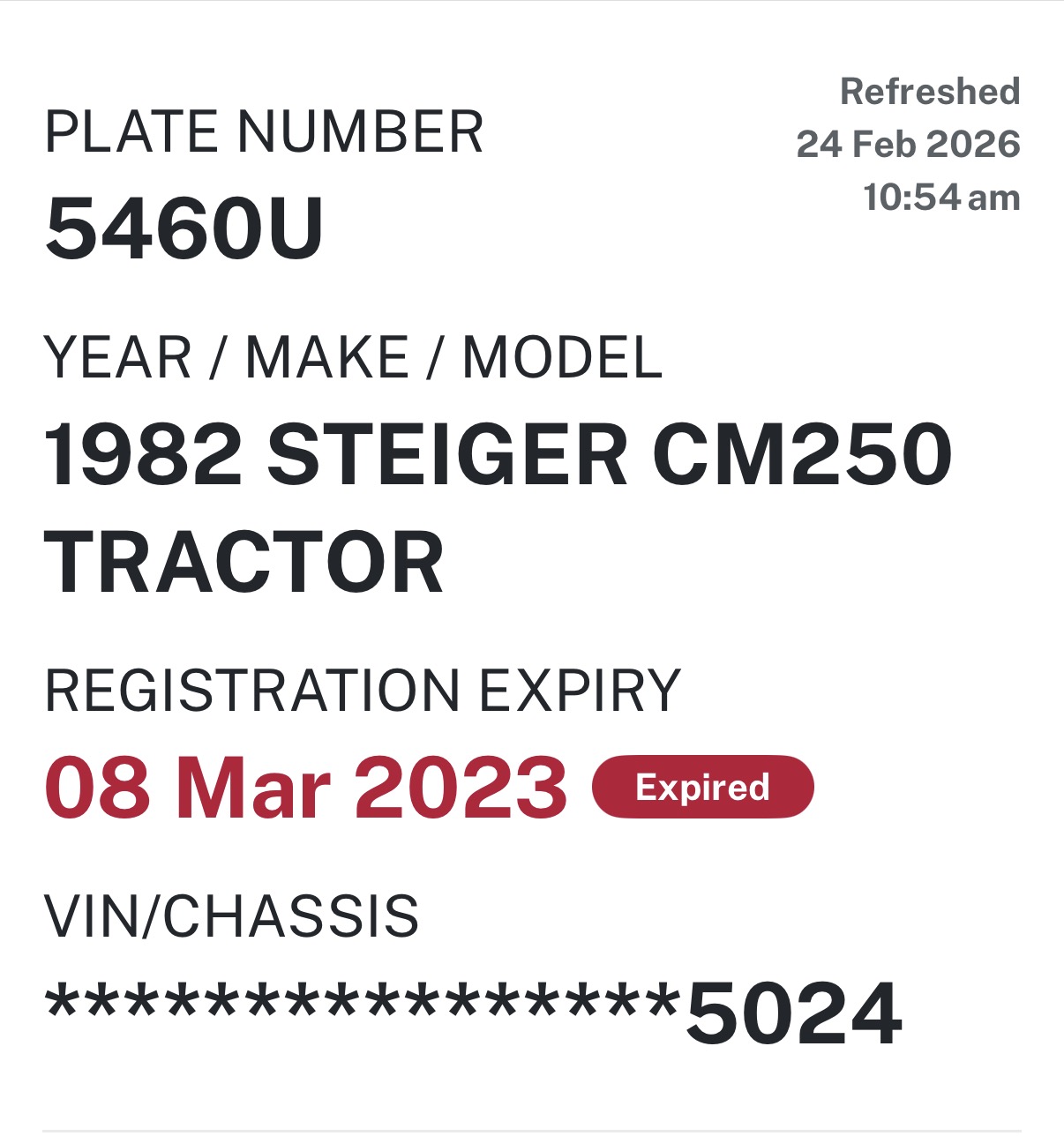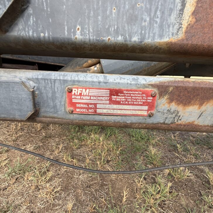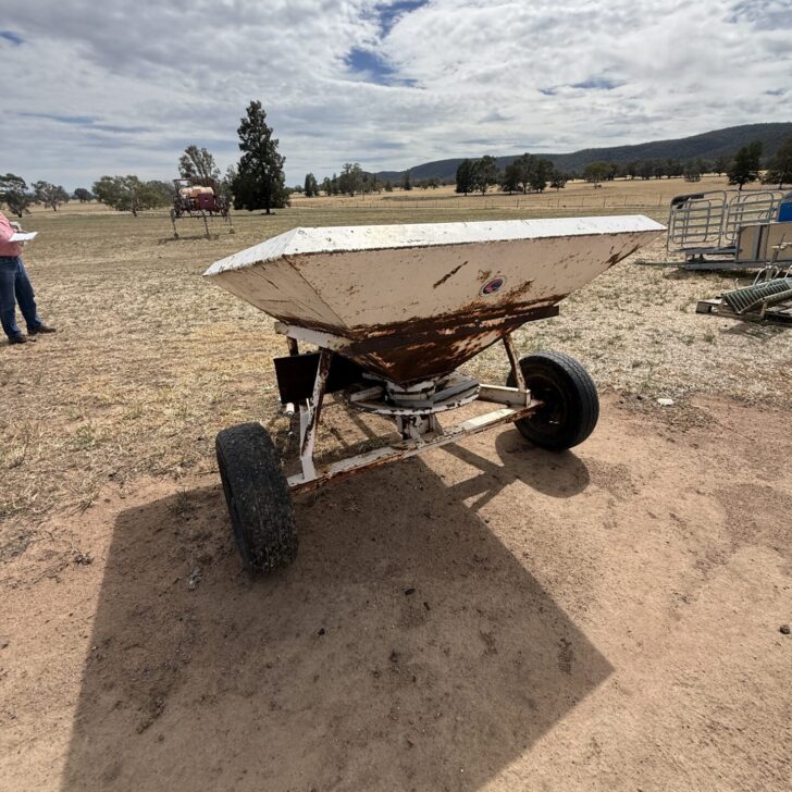 Steiger Cougar CM250 tractor, 250HP, air seeder return, 4 remotes, air conditioning, manual (original), 10,311hrs, 30% tyres; RFM Airdrill 2400 air seeder, 35 tyne, 28 foot, tyres 35%, 4 cameras – 1 each bin, in cab screen, in cab electronic controller, 3 bin seed box, 1 set up as small seed, new seed meter, rollers and bearings, coil packer harrows, full manual & calibration, liquid fert kit, assortment of spares, tynes and springs; Case IH 5126 stamped John Shearer frame Direct Drill Seeder, box raised, 27 tyne, tyres 95%, small seed box, manual; Ford 4600 Tractor 1982, 3223hrs, one owner, original condition, original manual and purchase receipt, front end loader, hay forks, bucket (gp); Bromar MF50 multifeed Trailer, 2020, extended Auger – 1m, 50 Bag, Honda motor, extra heavy 50mm chassis, R400 Boch scales, rollover tarp, electric trail feed, electric in/out gear fitted MF0025174 – serial number; Aerator – New Agrifarm Agrivator AV300, done 10ha, near new, 180mm tyne length, 3PL, 2.8m wide; Kurrajong 1000 Spreader (needs work but functional) tow behind spreader, PTO driven; Crown Slasher 2.2m tow behind, PTO, rough, needs work; Diesel Overhead tank, 2200 litre, needs work; Ford Ranger Tyres, 4 x Dunlop AT22 grandtrek 17 inch rims; Connor Shea tynes, pallet of; Plastic foot bath; Steel Silo – 8t, good fert/seed silo; Fire Harrows, needs work, centre length 3350, 2 wings 2660, overall 8360; Tyre Roller needs work 6100mm; Field Bin x 1 (20t), working order, needs tyres, no floor rust; Field Bin x 1 (15t), floor rusted out; Connor Shea Disc Drill Seeder, 3PL, 2.1m working width, seed/fert boxes; Sunbeam Overhead Gear x2 , old grinder, on pallet; Pallet of Tools; Yamaha DT200, unknown condition, tyres – front 30%, back 60%, with cardboard box; Husqvarna Bikes,2008 Husqvarna TE510, spares only, not in running condition, last ride stopped about 6 months ago and hasn’t been pulled down to fix; comes with complete spare 2009 Husqvarna TE510, complete, project, with pallet. Enduro tanks guards and seats all in good condition; Stacer Runabout 3.8m, forward controls, 20HP Mariner outboard, bimini, Rego – Trailer F46176 expires 10/08/2026, Boat RB240N expires 10/02/2027; Gas hot water system, unknown condition; Honda Quad TRX 420, 2008, tyres front 15%, back 20%, starts, runs intermittently; Te Pari Auto Drench Gun, brand new; Rheintechnik Preg Scanner; Grease Guns x2; HR Holden spares; John Deere 444 loader. No engine, no bucket. As is where is; Steel frame timber floor, incomplete raised dog cage base; Stays and Posts, 24 steel stays – 4 strainers; Hinge joint & Netting, 10 part rolls of hinge joint and foot netting; Hinge joint & Gates, 6 part rolls of used hinge joint and 2 old gates; Wire spinners; Wire, pallet of barb wire and plain wire Hinge joint roller; Assortment of tyres. Some with rims; Steel posts, pallet of Steel Star pickets – used; Multiple IBC’s, non chemical, food safe;