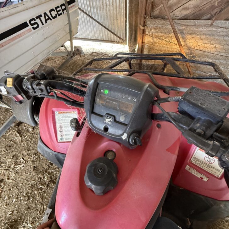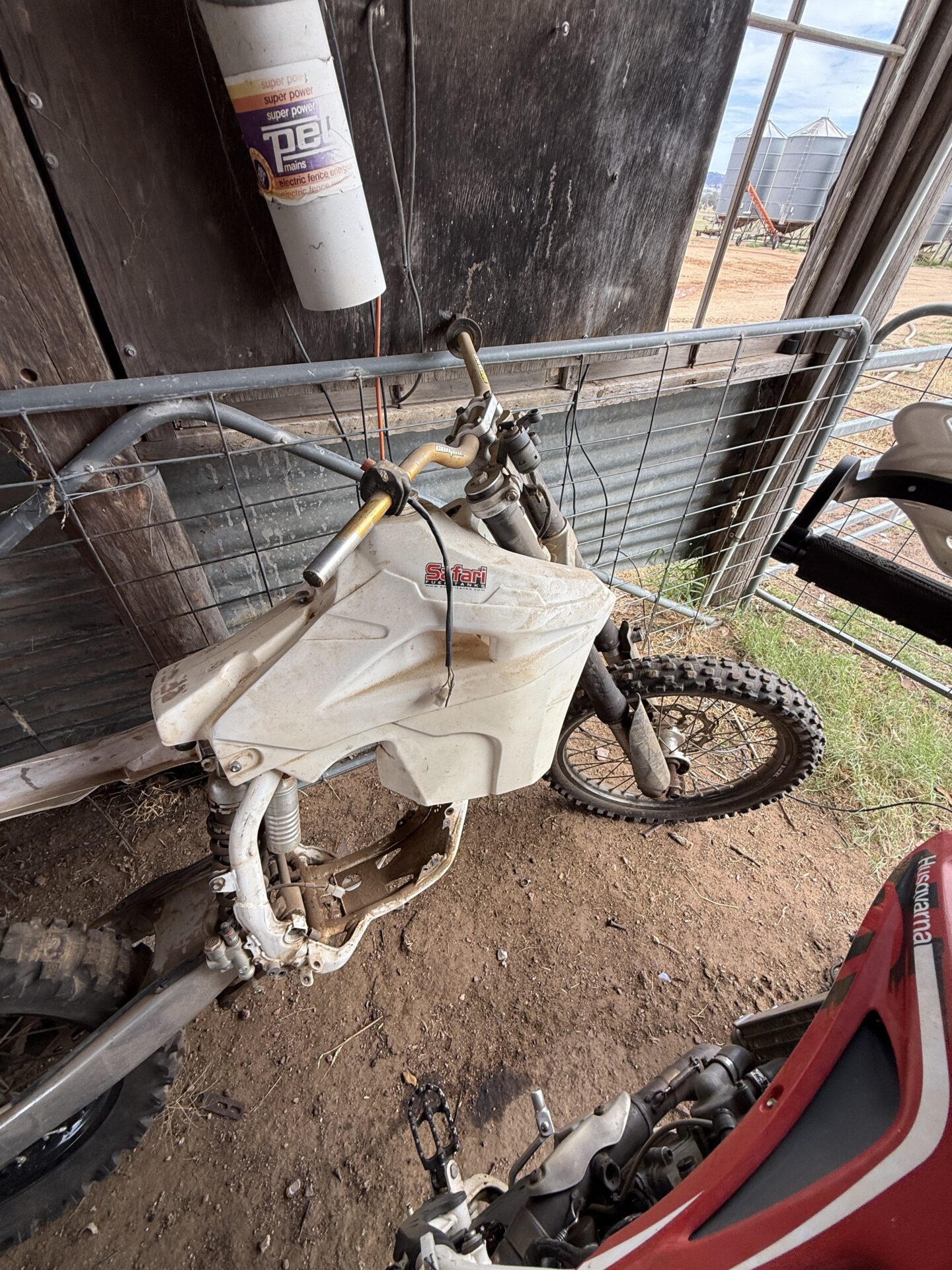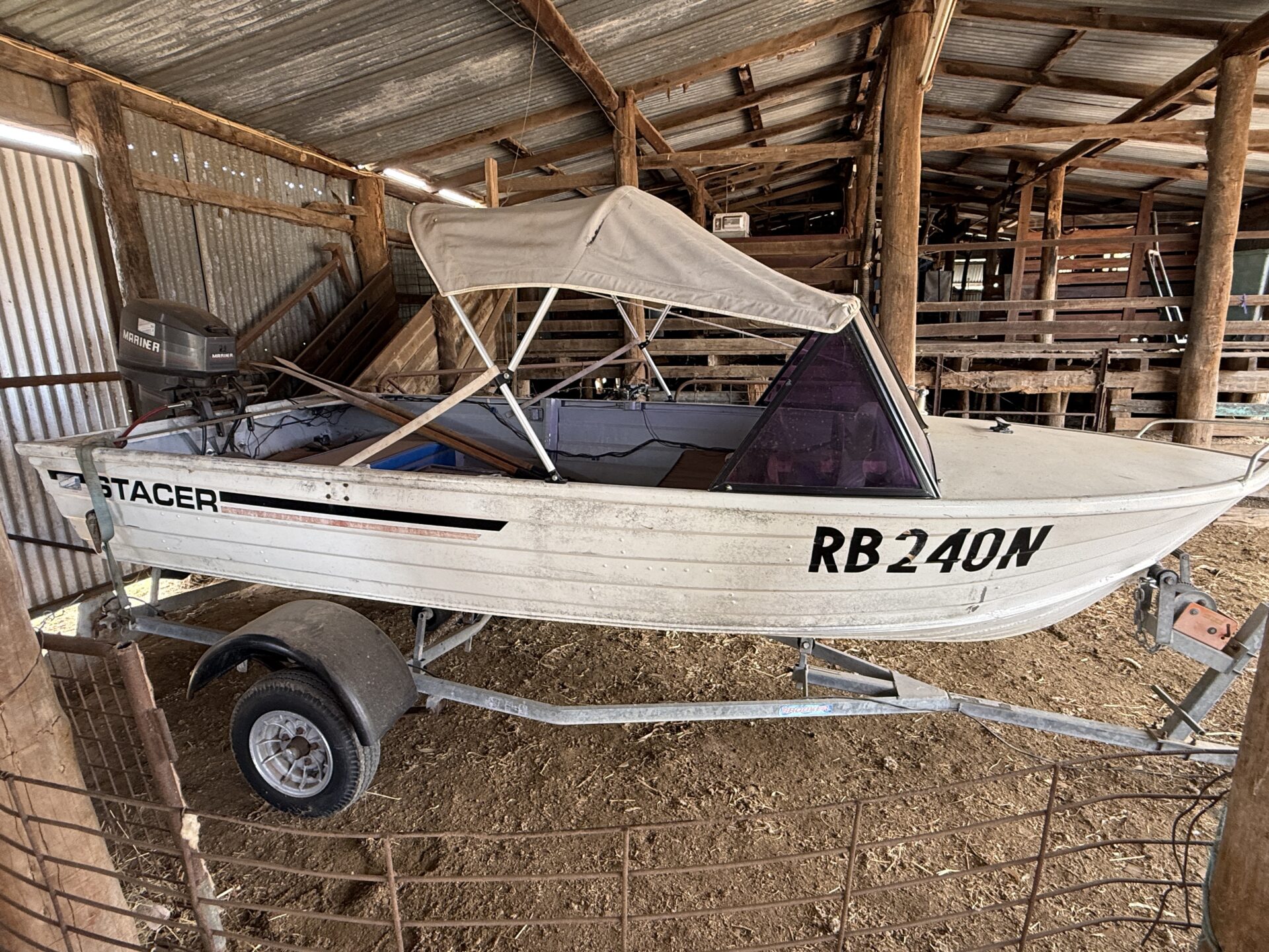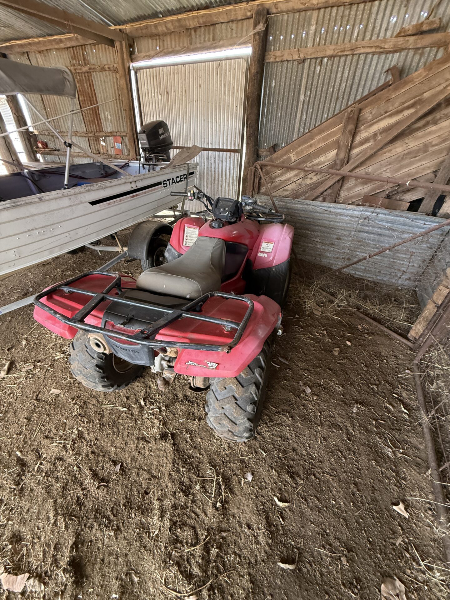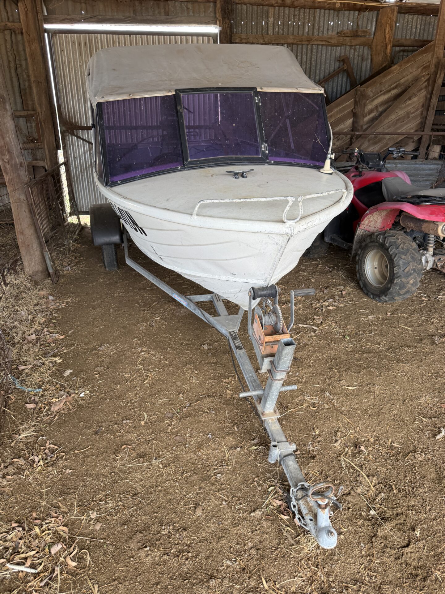 Steiger Cougar CM250 tractor, 250HP, air seeder return, 4 remotes, air conditioning, manual (original), 10,311hrs, 30% tyres; RFM Airdrill 2400 air seeder, 35 tyne, 28 foot, tyres 35%, 4 cameras – 1 each bin, in cab screen, in cab electronic controller, 3 bin seed box, 1 set up as small seed, new seed meter, rollers and bearings, coil packer harrows, full manual & calibration, liquid fert kit, assortment of spares, tynes and springs; Case IH 5126 stamped John Shearer frame Direct Drill Seeder, box raised, 27 tyne, tyres 95%, small seed box, manual; Ford 4600 Tractor 1982, 3223hrs, one owner, original condition, original manual and purchase receipt, front end loader, hay forks, bucket (gp); Bromar MF50 multifeed Trailer, 2020, extended Auger – 1m, 50 Bag, Honda motor, extra heavy 50mm chassis, R400 Boch scales, rollover tarp, electric trail feed, electric in/out gear fitted MF0025174 – serial number; Aerator – New Agrifarm Agrivator AV300, done 10ha, near new, 180mm tyne length, 3PL, 2.8m wide; Kurrajong 1000 Spreader (needs work but functional) tow behind spreader, PTO driven; Crown Slasher 2.2m tow behind, PTO, rough, needs work; Diesel Overhead tank, 2200 litre, needs work; Ford Ranger Tyres, 4 x Dunlop AT22 grandtrek 17 inch rims; Connor Shea tynes, pallet of; Plastic foot bath; Steel Silo – 8t, good fert/seed silo; Fire Harrows, needs work, centre length 3350, 2 wings 2660, overall 8360; Tyre Roller needs work 6100mm; Field Bin x 1 (20t), working order, needs tyres, no floor rust; Field Bin x 1 (15t), floor rusted out; Connor Shea Disc Drill Seeder, 3PL, 2.1m working width, seed/fert boxes; Sunbeam Overhead Gear x2 , old grinder, on pallet; Pallet of Tools; Yamaha DT200, unknown condition, tyres – front 30%, back 60%, with cardboard box; Husqvarna Bikes,2008 Husqvarna TE510, spares only, not in running condition, last ride stopped about 6 months ago and hasn’t been pulled down to fix; comes with complete spare 2009 Husqvarna TE510, complete, project, with pallet. Enduro tanks guards and seats all in good condition; Stacer Runabout 3.8m, forward controls, 20HP Mariner outboard, bimini, Rego – Trailer F46176 expires 10/08/2026, Boat RB240N expires 10/02/2027; Gas hot water system, unknown condition; Honda Quad TRX 420, 2008, tyres front 15%, back 20%, starts, runs intermittently; Te Pari Auto Drench Gun, brand new; Rheintechnik Preg Scanner; Grease Guns x2; HR Holden spares; John Deere 444 loader. No engine, no bucket. As is where is; Steel frame timber floor, incomplete raised dog cage base; Stays and Posts, 24 steel stays – 4 strainers; Hinge joint & Netting, 10 part rolls of hinge joint and foot netting; Hinge joint & Gates, 6 part rolls of used hinge joint and 2 old gates; Wire spinners; Wire, pallet of barb wire and plain wire Hinge joint roller; Assortment of tyres. Some with rims; Steel posts, pallet of Steel Star pickets – used; Multiple IBC’s, non chemical, food safe;